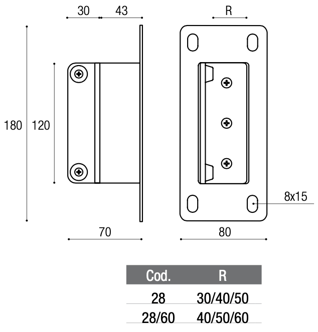 Adjustable leaf to be fixed for electric locks with screws for escutcheon fixing, Adem 28 and 28/60 model.