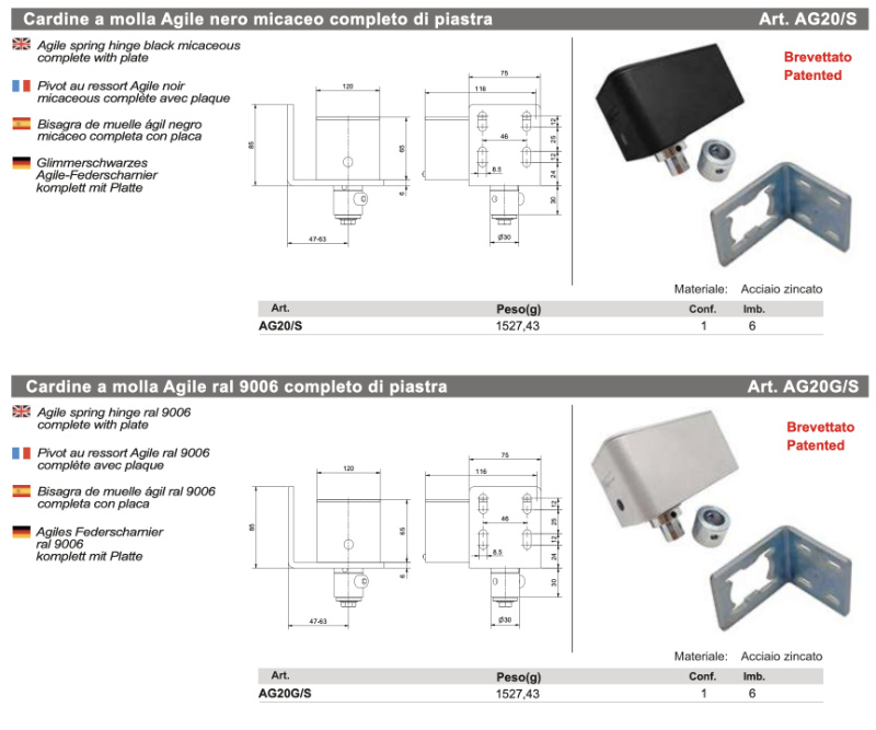 AG20G - COMPLETE GRAY AGILE SPRING HINGE.