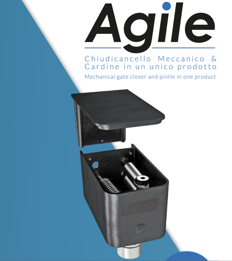 Agile 2.0 Nova-Ferr is a mechanical gate closer / gate opener / spring hinge in a single product : it is ideal for gates or doors and it is a hinge but also a mechanical gate close / opener, very easy to adjust and applicable in any situation .