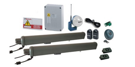 Kit for swing gates, for residential use, with electromechanical arm actuator, with electronic limit switches.