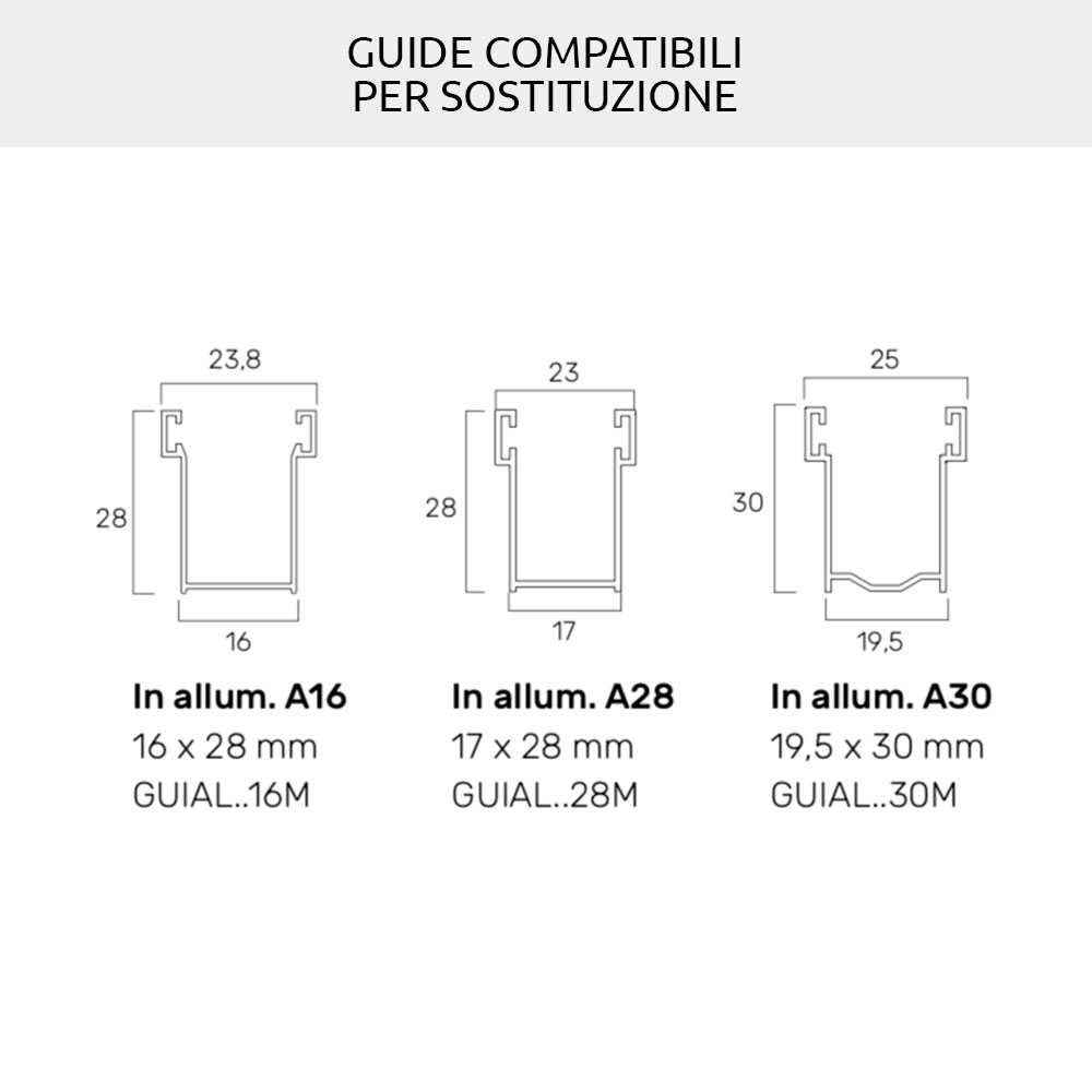 Replacement or new installation of roller shutters and sliding guides: for the width of the roller shutter, with reference to the guides to be used, the necessary tolerances must be taken. You can use the old guides if they are in good condition and if they have at least 16.5mm of usable space inside.