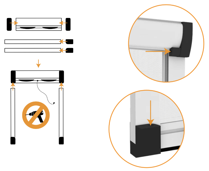 Screwless insect screens, like all other insect screen models, must be made to measure to fit perfectly to the size of your window or French door. Thanks to our wide range of products, you will find the ideal solution to protect your home from mosquitoes and insects, without having to use screws or other fixing tools.