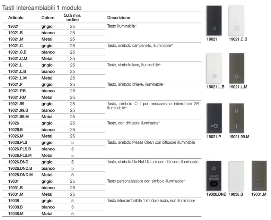 - 19026.DND - 1 module arkè key, Do Not Disturb symbol with gray illuminable diffuser;