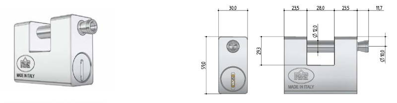 - Armored padlock entirely in chromed carbonitrided steel ;