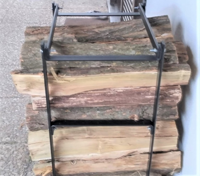 handcrafted indoor or outdoor log holder , product code J40. This elegant accessory will not only help you keep your firewood tidy and accessible, but will also add a touch of craftsmanship and design to your environment.