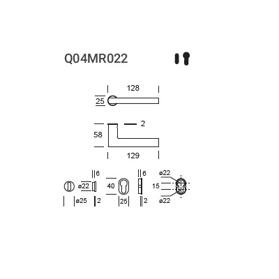 - Steel handle with minimal rosette ø25x2 mm and WC 503 pawl with 6 / 8mm square.