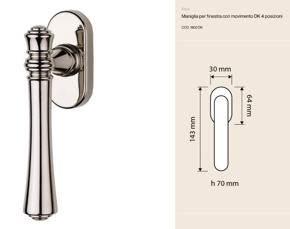 Aura window handle by Linea Calì represents the perfect synthesis between tradition and contemporary elegance.