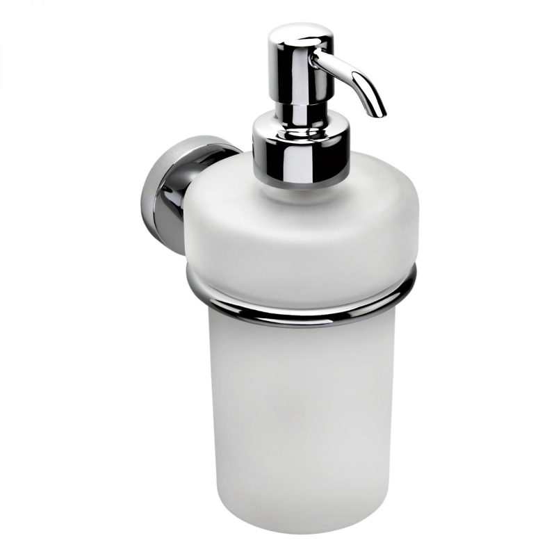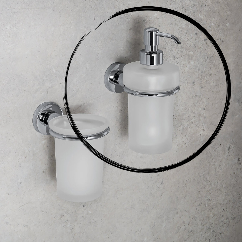 With its natural acid-etched glass and chrome finish , the Basic soap dispenser integrates easily into any bathroom environment, offering practicality and style.