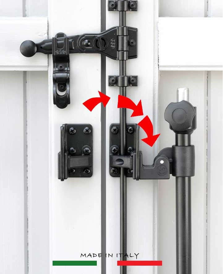 The only precaution is that in the case of single-sash windows, the system must necessarily be inserted into the Door Lock Hook from above instead of from below. In this case the rotation will take place from below instead of from above.