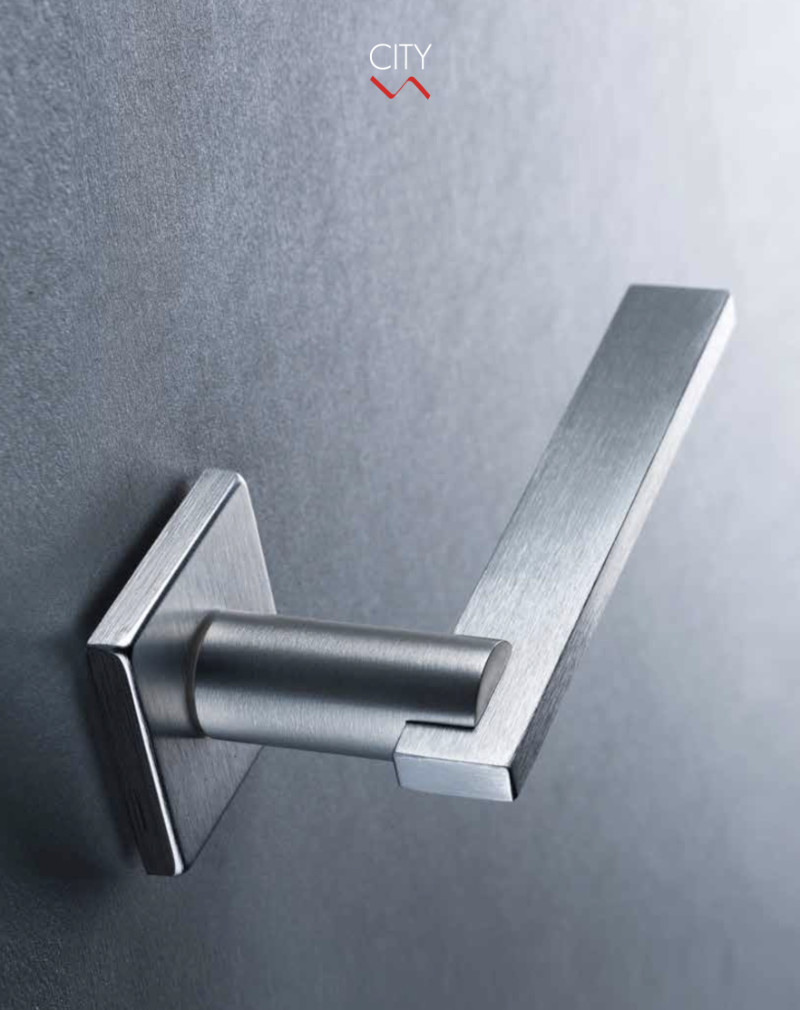 The City Arieni handle stands out for its geometric and modern lines, enriched by a combination of finishes that give it a distinctive look. The