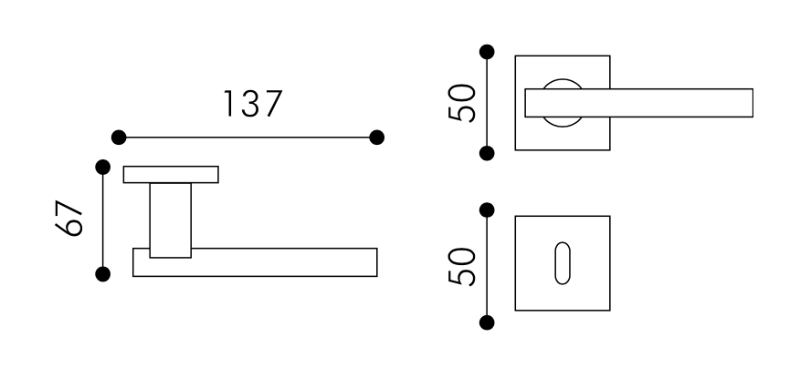 rectangular handle integrates perfectly with the square rosette, creating a balanced and harmonious design that adapts to contemporary and sophisticated interiors.