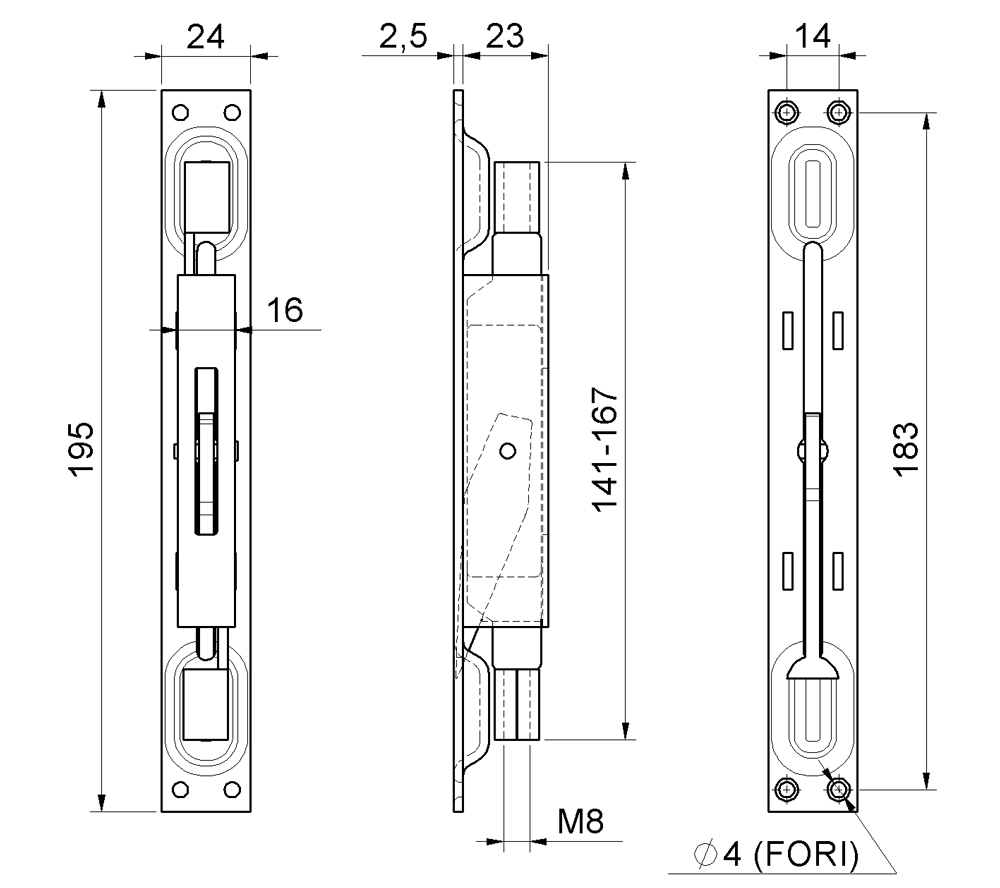 Double Action Flush-Mounted Bolt with Brass Lever Block System Combiarialdo