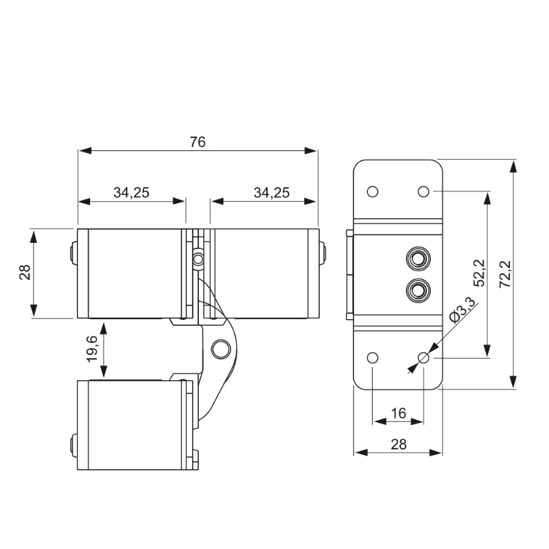 - 133/1.2.3 - CONCEALED HINGE FOR COMPLANAR IRON PROFILES - 90° OPENING;