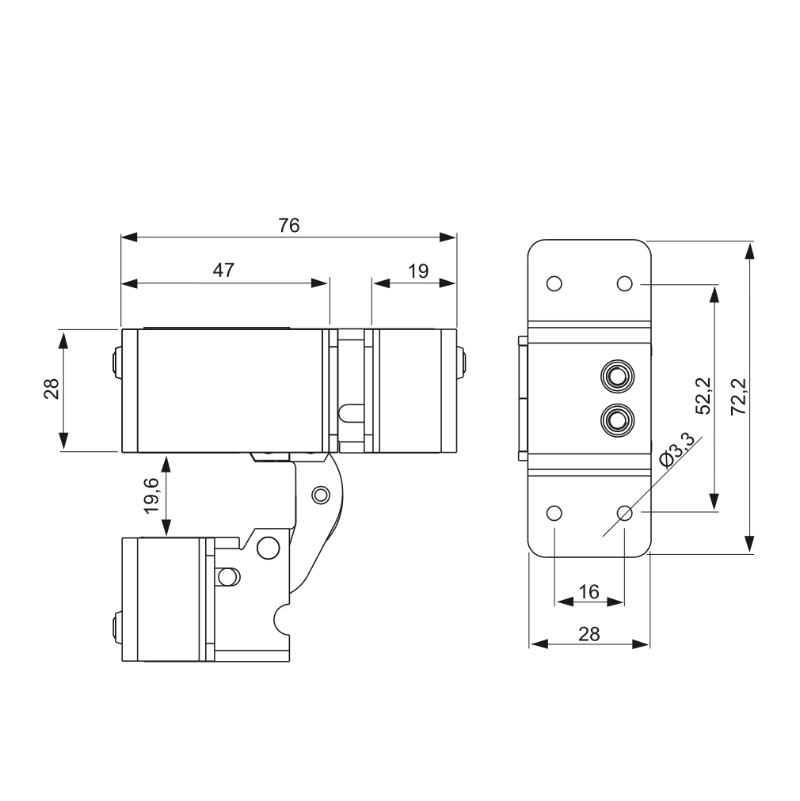 Concealed hinges 133-2.2.4 Nova-Ferr technical drawing and measurements: