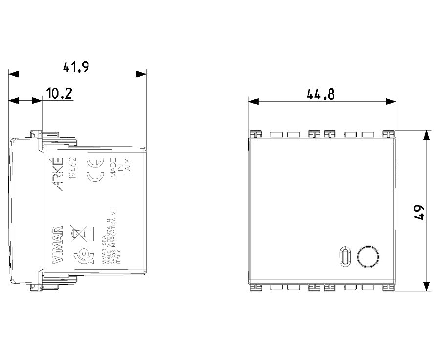 Technical data outside the door connected IoT 19462 Arké Vimar