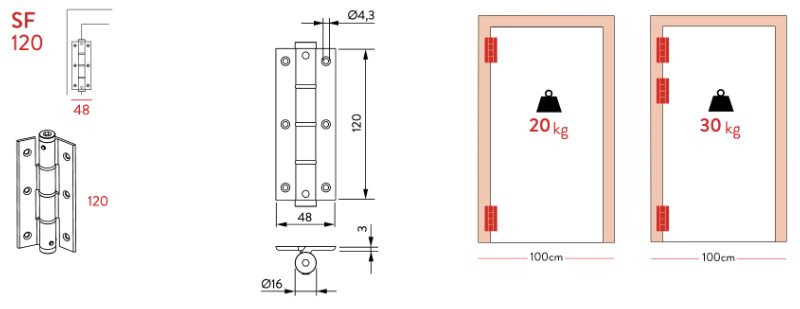 a hinge length of 120 mm and more than 300,000 life cycles.
