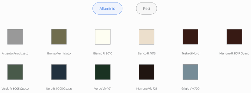 Color range: the mosquito net manufacturer Officine Rami offers a wide range of fabric colors (select the variant you want). The colors represented in these tables have a purely indicative value and cannot in any case be considered as reference colors for any color differences compared to the real ones.