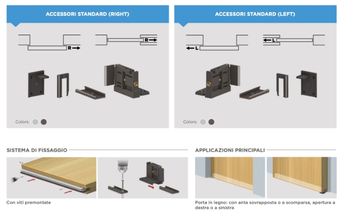 - simplified universal installation for application on both overlapping and concealed sliding doors, with right or left opening