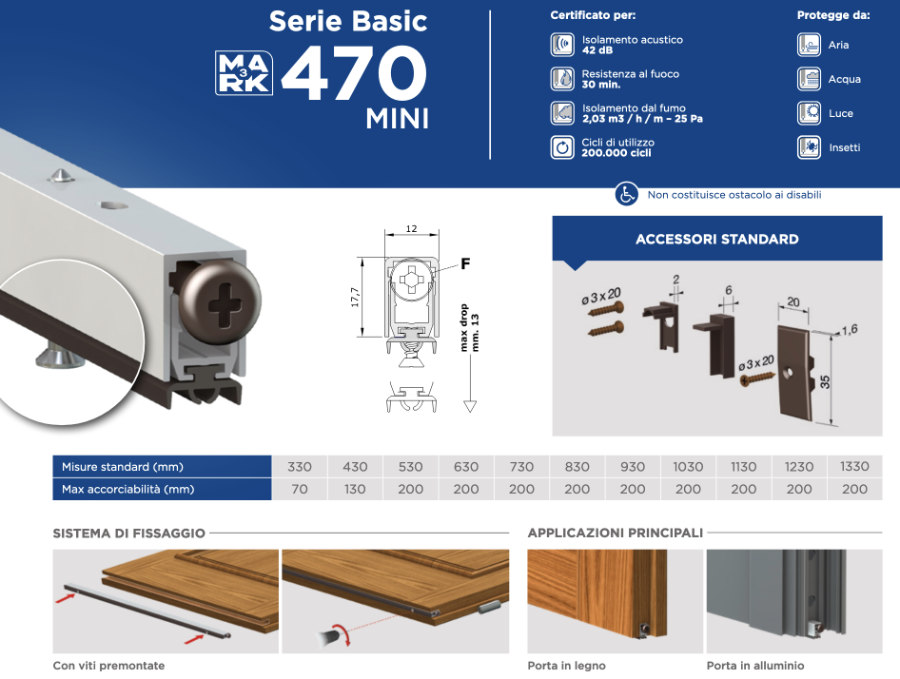 Draught Excluder 470 Mini Comaglio with pre-assembled screw fixing