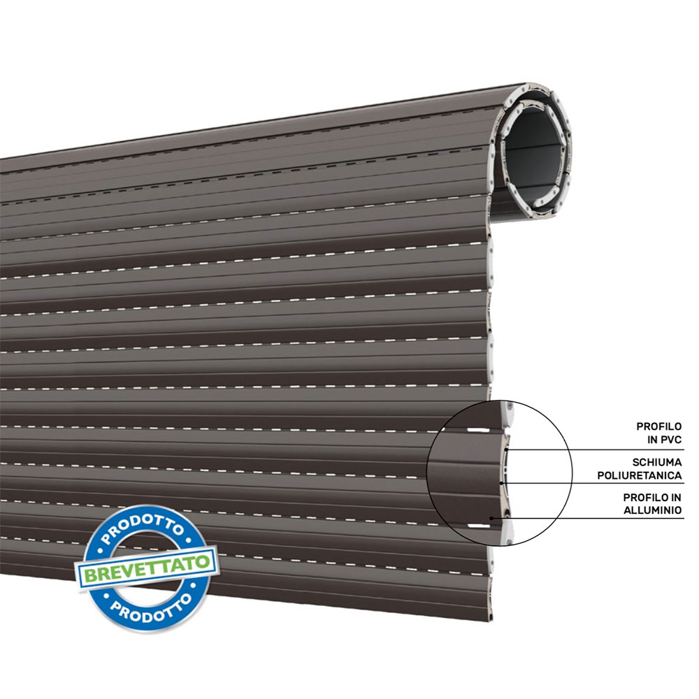 The particular coupling system between the two sides of the slat interrupts the thermal conductivity of the metal . Therefore, with the aluminum positioned outside and the PVC placed inside, there is an interruption of the thermal transmittance between the external and internal environment.