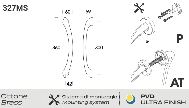 Package includes: 1 Reguitti brass door pull handle and 1 fixing kit.