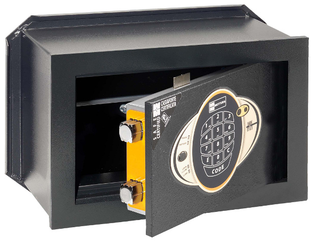 Discover a wide range of safes for private use certified UNI EN 14450 in class S2 and for hotels, resorts and ships. Maximum sturdiness in both the free-standing and wall-mounted models.