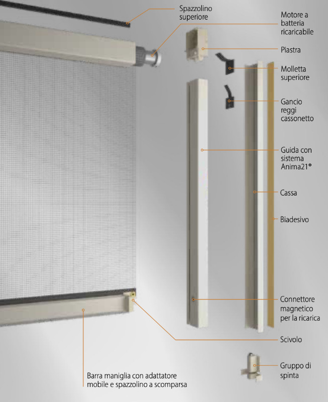 As mentioned a moment ago, the Estetika Bettio insect screen with motor is equipped with an ANIMA21 windproof system which allows the