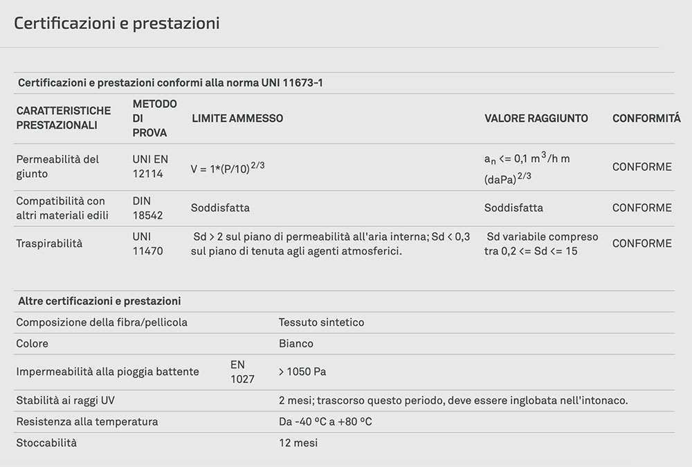 - Breathability (UNI 11470): Sd variable between 0.2 <= Sd <= 15 COMPLIANT
