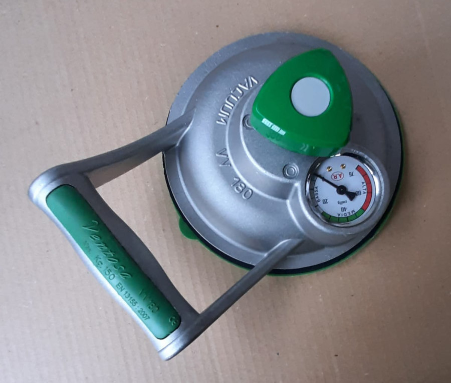 with a single plate with a Ø200mm diameter. It is ideal for the work of glaziers and window makers. The model of suction cup for glass that we offer you has the Ariston brand and is the Super VV200 SGL type.
