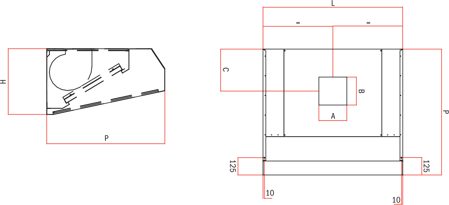 Technical sheet - Self-suction hood with activated carbon in stainless steel (with electric fan)