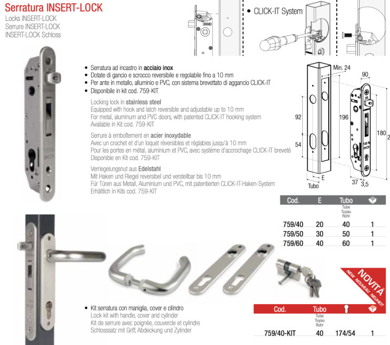 - For metal, aluminum and PVC doors, with patented CLICK-IT hooking system;