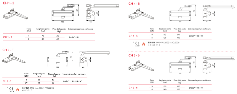 ATTENTION: CH 1-2 is not CE marked. Justor CH 2-3 4-5 and 5-6 models are door closers for fire doors marked CE.