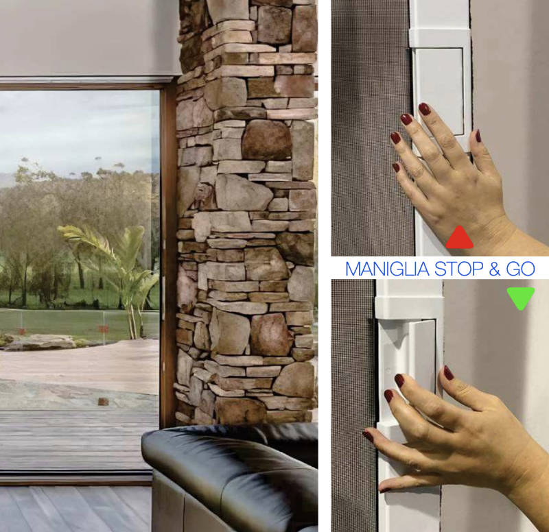 lateral insect screen with Stop & Go handle , and rounded box of 100 mm and characterized by a