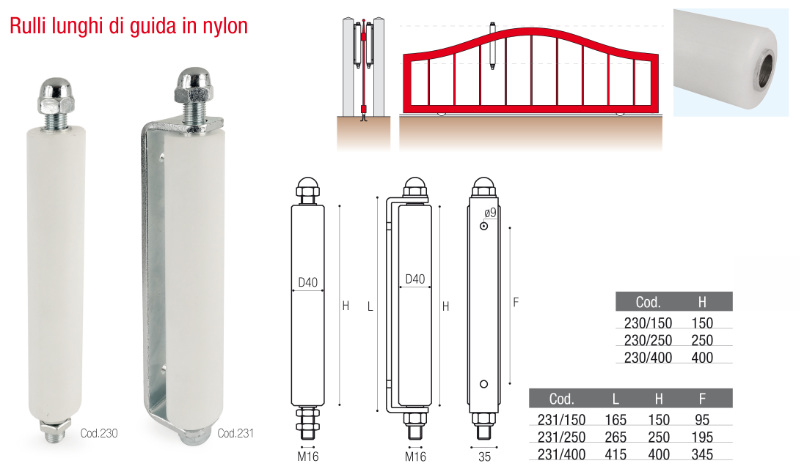 Long Nylon Guide Rollers for Sliding Gates - Brevetti Adem
