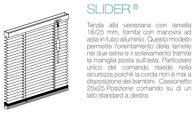 - Venetian Blind Slider 25 mm is a blind with safe control Slider and rod for orientation;