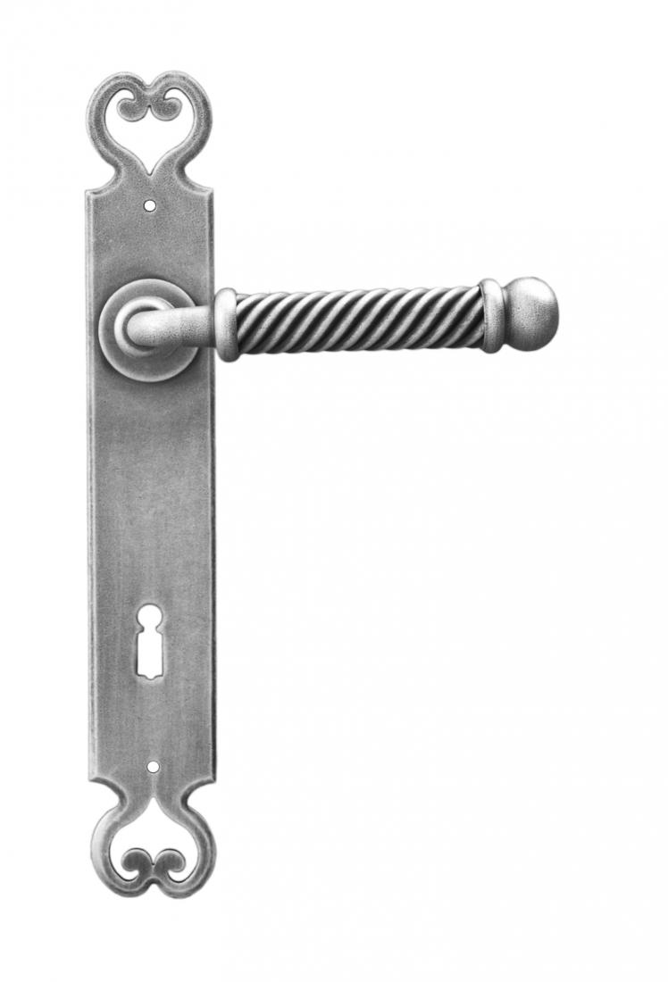 - Door handle on wrought iron plate.