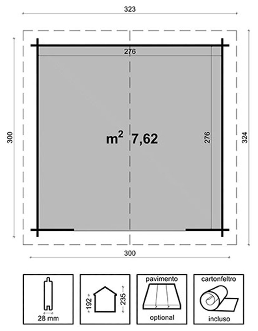 The house is supplied with bituminous felt which, if correctly assembled, guarantees a duration of approximately two/three years, therefore it is advisable to purchase and waterproof the house with a long-lasting covering such as bituminous tiles, corrugated roofing, slated sheath, etc.