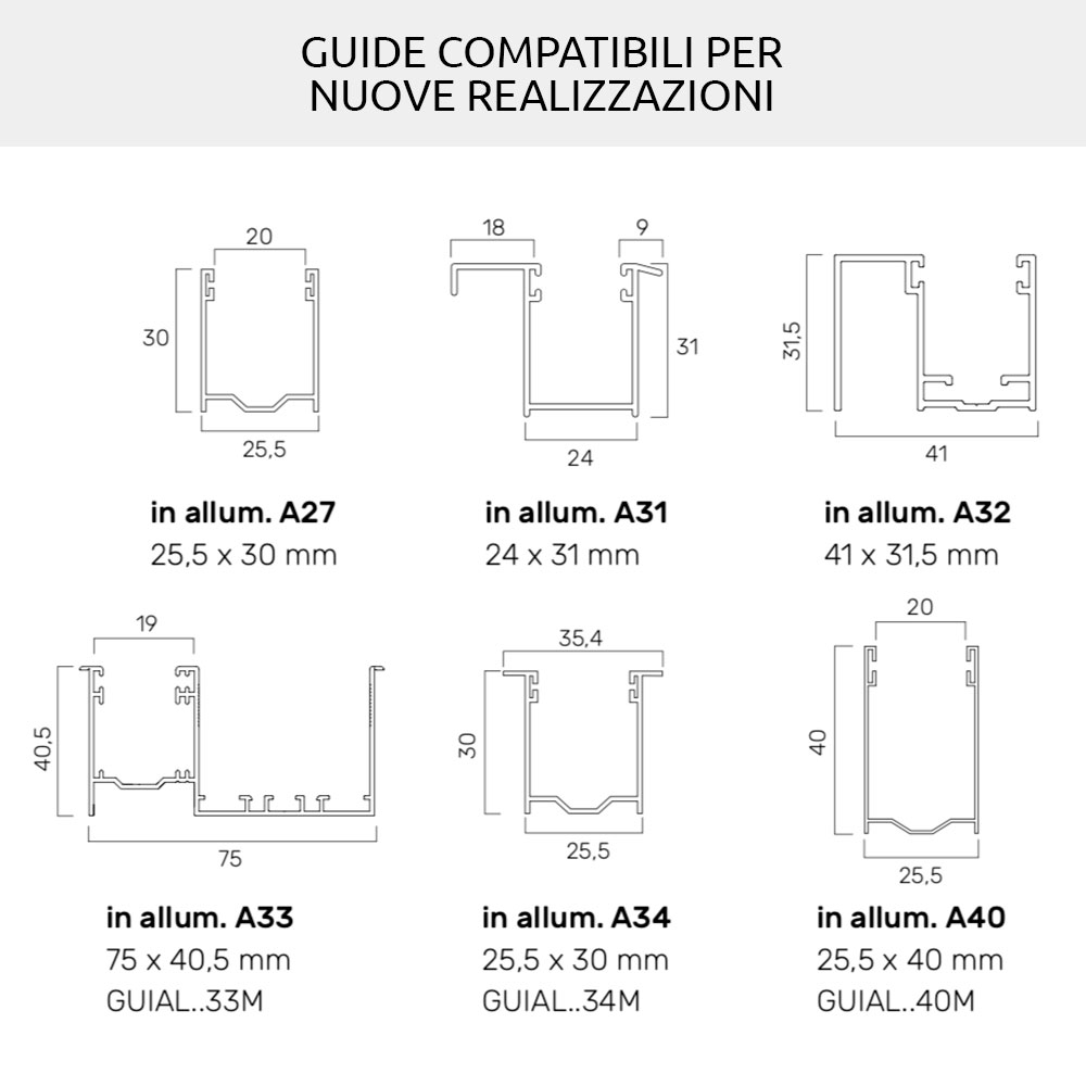 Replacement or new installation of roller shutters and sliding guides: for the width of the roller shutter, with reference to the guides to be used, the necessary tolerances must be taken. You can use the old guides if they are in good condition and if they have at least 16.5mm of usable space inside.