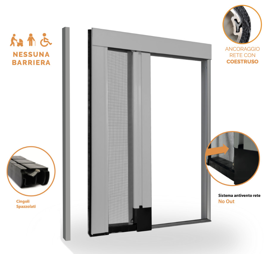 Mega protection, mega resistance and mega comfort. The Mega Effezeta System mosquito net is a lateral sliding mosquito net with retractable track guideand windproof system .