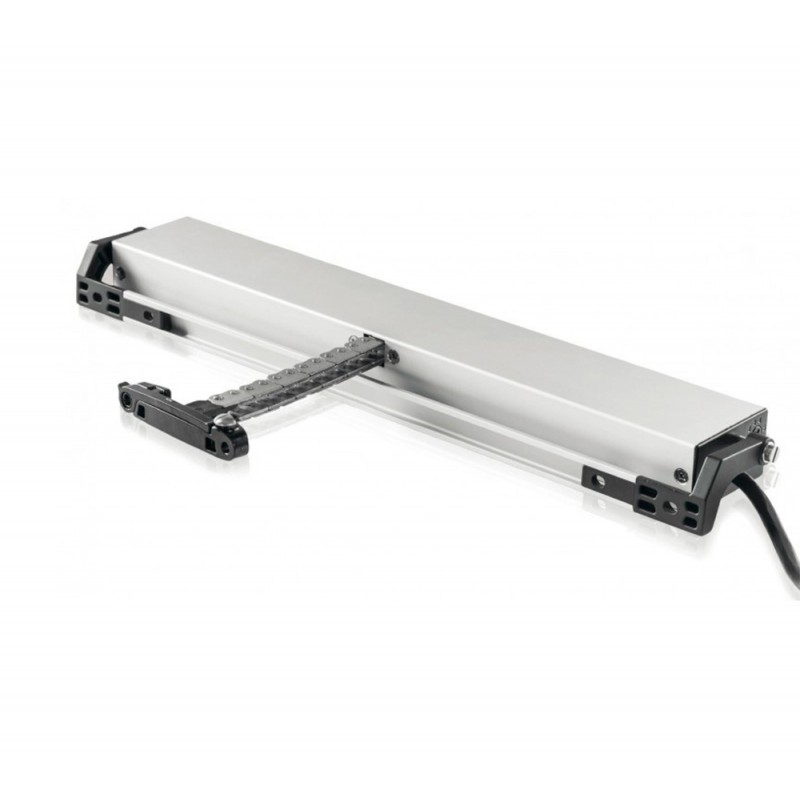 Micro Evo 1 Mingardi: linear electric actuator with double link articulated chain contained within a metal casing.