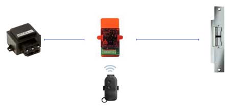 It allows, in an extremely simple way, to control any electric lock via a radio control without the aid of an additional power supply. For this reason it can also be applied to already installed electric locks.