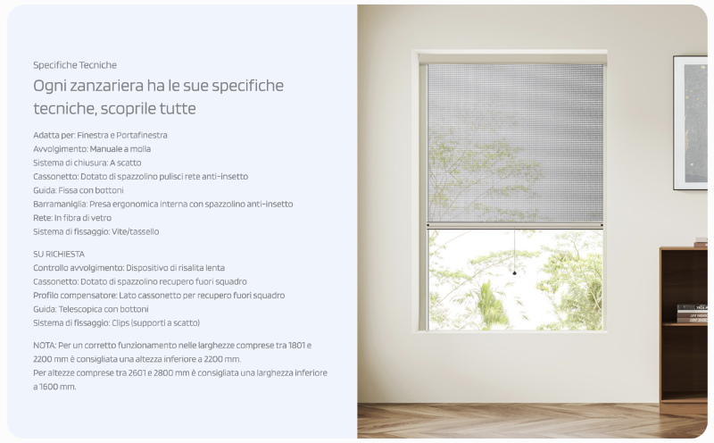 The selection of Officine Rami products varies from vertical mosquito nets to the latest generation technical curtains, including advanced models such as mosquito nets with tanks and pleated ones, ideal for those who want functional and cutting-edge products. Furthermore, the brand offers easy-to-install mosquito nets, perfect for those looking for