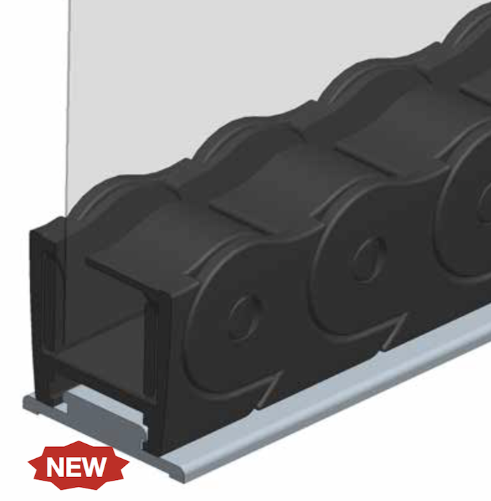 The flexible floor guide has a hooking system to the tracks preventing the same to rise up in case of wind.