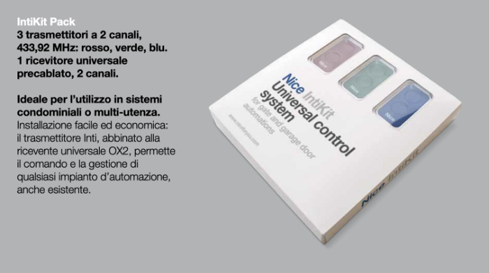 The Nice IntiKit system is ideal for use in condominium or multi-user systems.