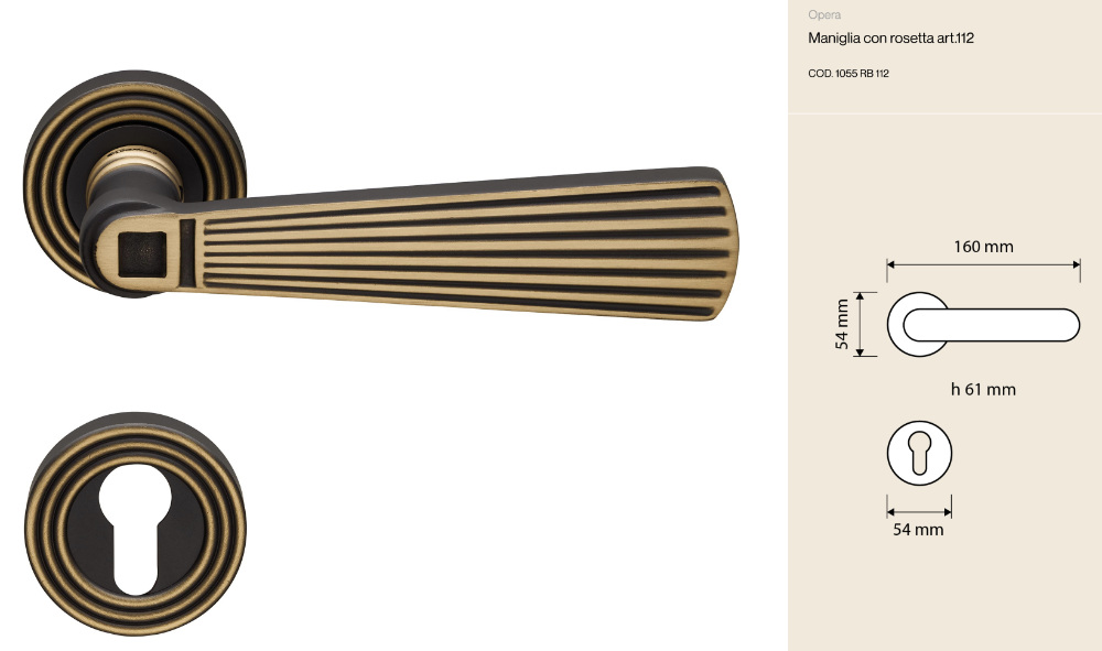 five premium finishes – matt bronze, satin bronze brass, French gold, pure gold, and patiné – it offers a wide aesthetic versatility that adapts to any type of door and furnishing style.