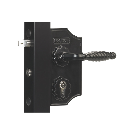 ornamental gate lock combines refined aesthetics and advanced functionality. Its aluminum body is designed to offer robustness while maintaining a low weight, while the stainless steel mechanism ensures durability and resistance to bad weather. The zamak handle adds a touch of elegance without compromising safety.