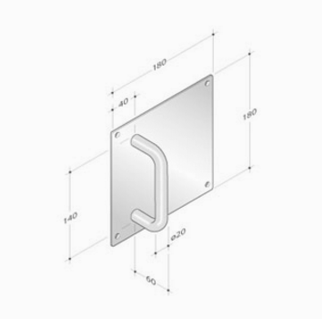 Fixed pull handle on square plate in stainless steel AISI 316L.