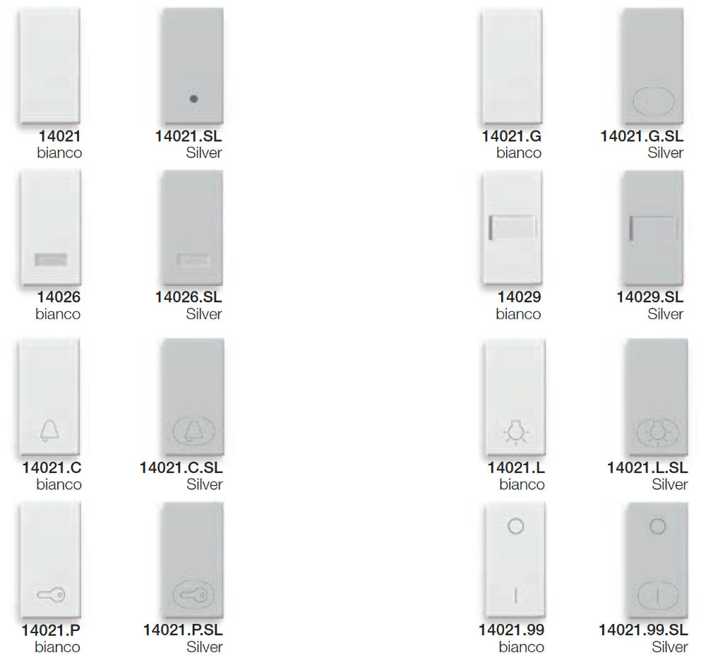 14021.99 button, the symbol O / I for switches -separ mechanism 2P 14015.0, illuminated ring, white.