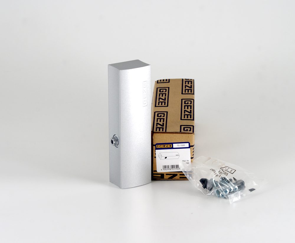 GEZE TS 1500, with arm V-retainer with adjustable power, complete with hardware and installation template (mounting plate not included).