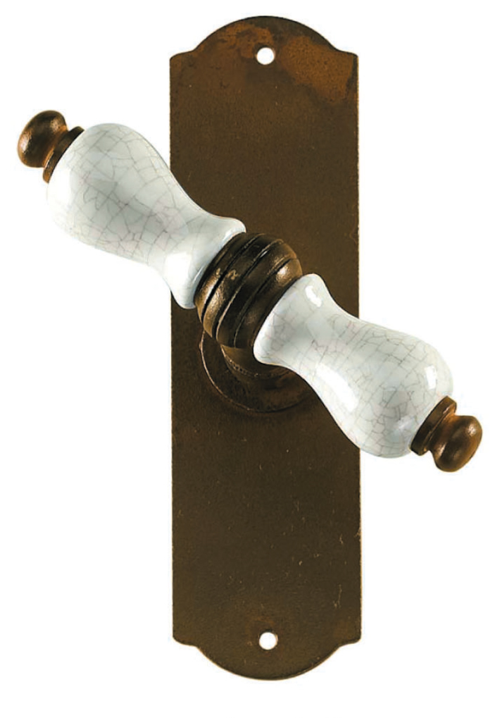 Prague Galbusera Window Handle with Plate Porcelain and Wrought Iron